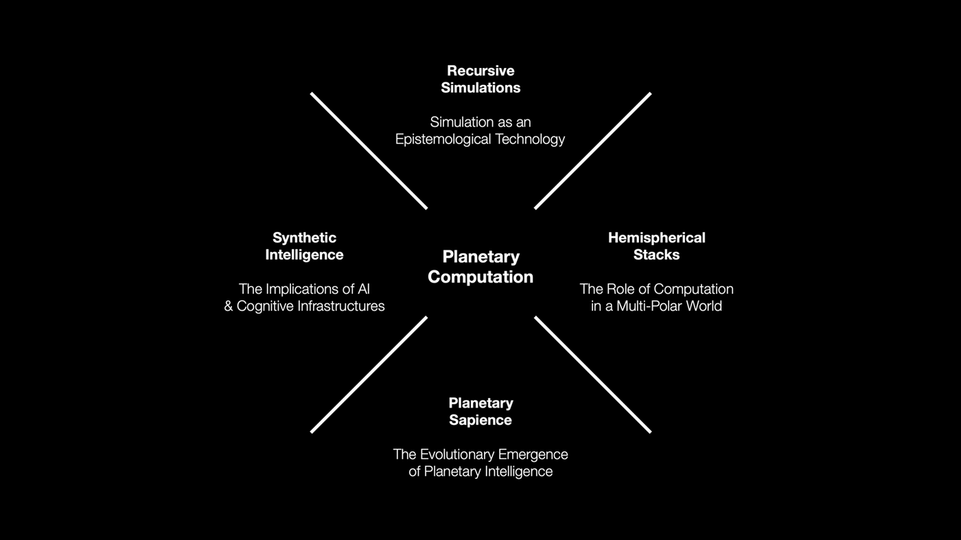 Antikythera’s research is roughly divided into four key tracks, each building off the core theme of planetary computation. They each can be defined in relation to one another, and as the program evolves, new ideas are consolidating as our research into these various areas deepens.