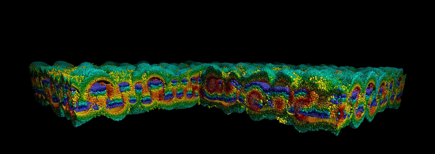 At the same moment that we discover that they have always been more deeply interconnected than we realized, we learn to artificially combine them in new ways. The technical reality drives the paradigmatic shift, which drives the technological shift. Hybrids of living and nonliving materials produce chimeras and cyborgs, from the scale of individual cells to entire cities. Minerals are folded and etched with intricate care, pulsing with electrical current and performing feats of intelligence previously exclusive to primates.